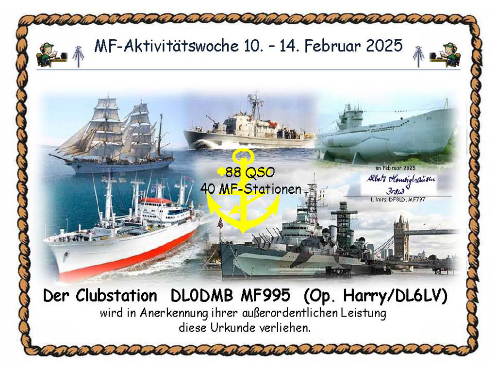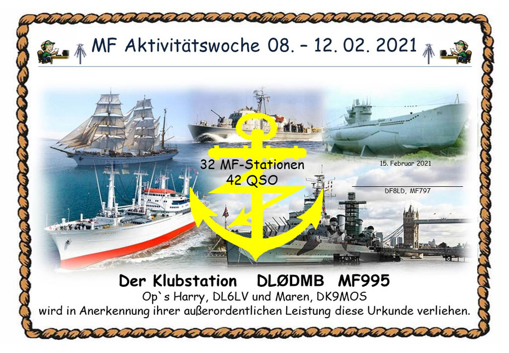 This year we were able to succeed in working a minimum of MF stations. As a thank you we received these beautiful certificates of participation.